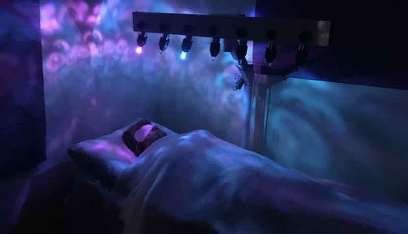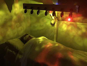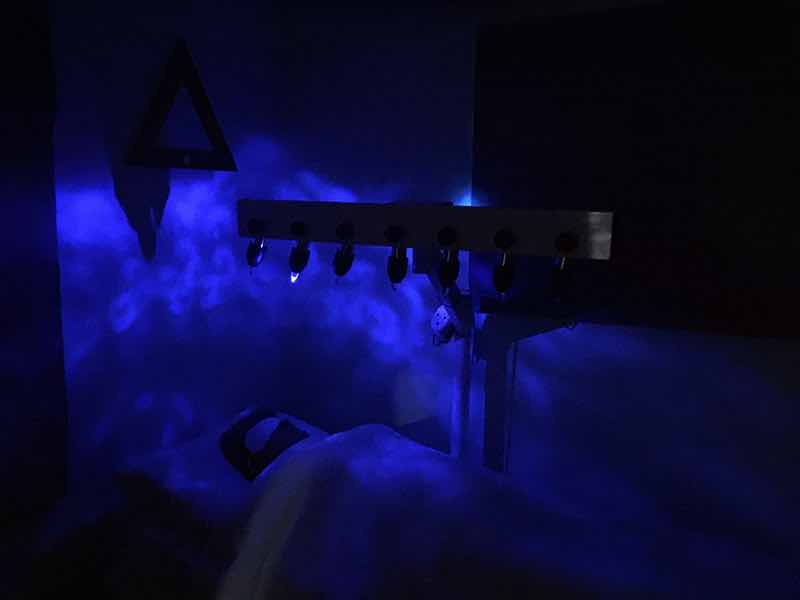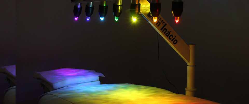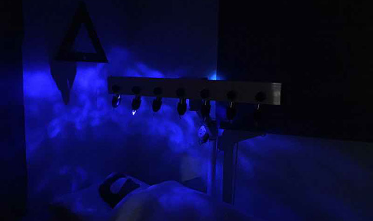 Coloured lights, chosen to match the chakra colours, radiate light and energy through the crystals to each respective chakra, and shine on and off in certain rhythms to cleanse, balance, and align your energies. The individual receiving the session rests face up with eyes closed, bathing in the energy.